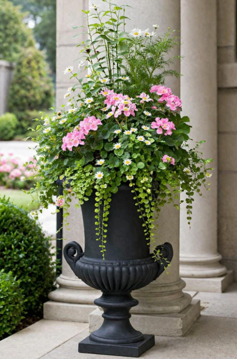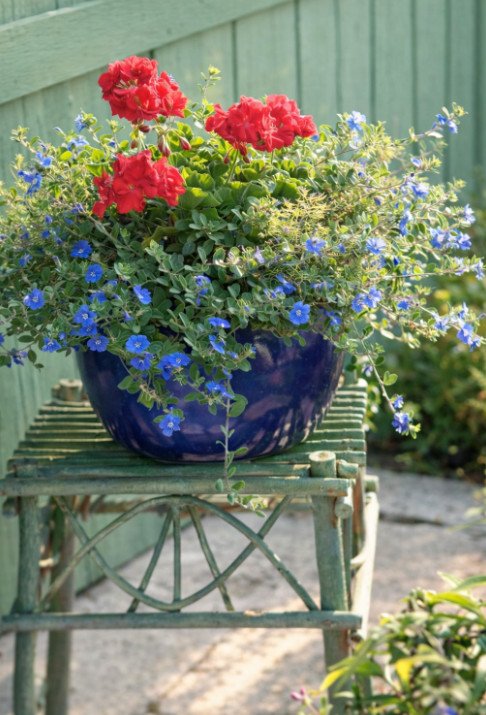 A great layout trick is to plant the tall geranium right in the center and let the trailing flowers spill beautifully over the outer edges.