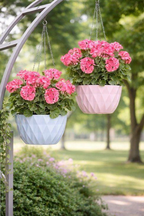You can paint geometric shapes, soft pastel stripes, or even playful polka dots. This allows you to perfectly match your new geranium planters to your existing patio furniture cushions.