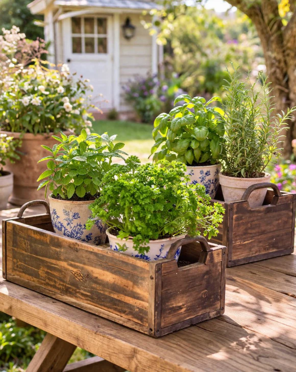 For an authentic farmhouse style, repurpose old rustic wooden crates as your new geranium planters. They look super Pinterest-worthy and add instant vintage charm to any cozy backyard corner.