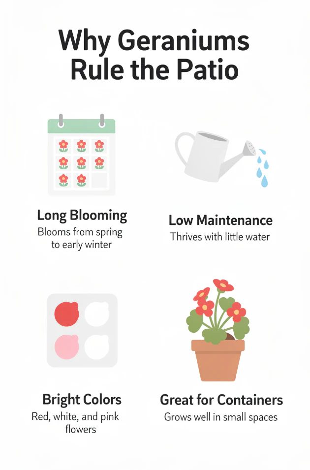 Letโs be honest, nothing upgrades a patio faster than fresh blooming flowers. If you ask me, geraniums are one of the absolute easiest ways to add instant color without a ton of effort.