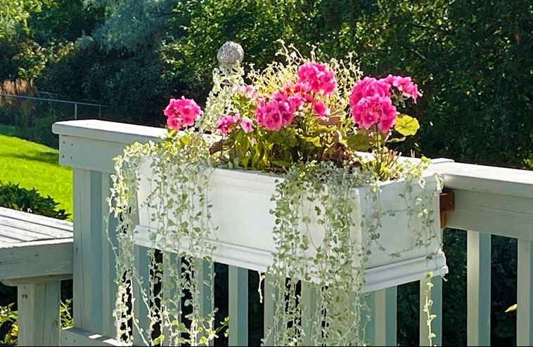 Unlike cut flower bouquets that die in a few days, a potted geranium adds instant charm and will continue actively blooming for the entire summer season.