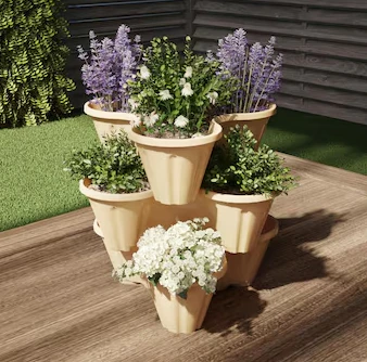 - Watering tip: Always place plants that need more water on the bottom tier, as water from the top pots will drip down.