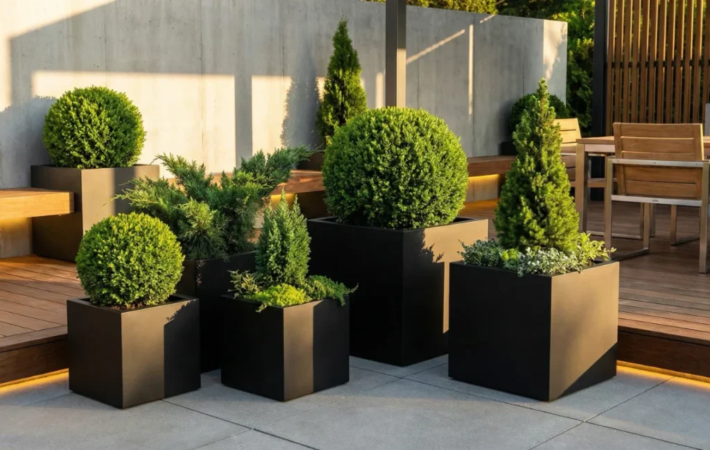 For a highly professional and cohesive patio design, stick to a monochrome color theme for your flower pots outdoor. Mixing too many random colors can sometimes make a space look chaotic.