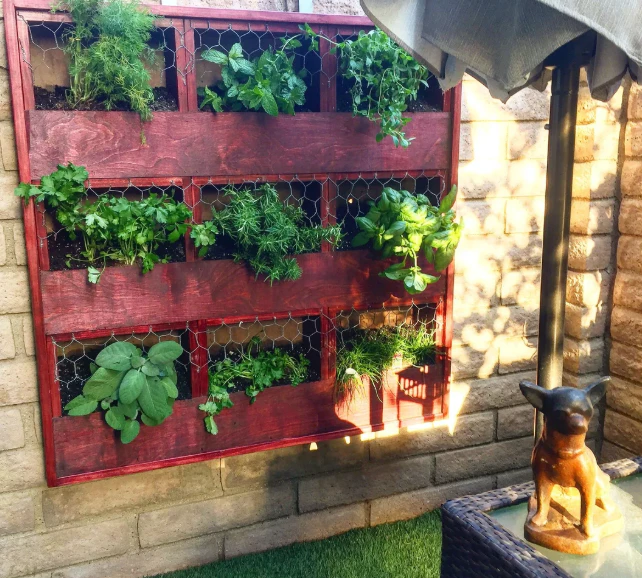Find an old wooden shutter with adjustable louvers. Mount it vertically, create small pockets behind the louvers with landscape fabric, and plant small herbs. It adds fantastic vintage charm.