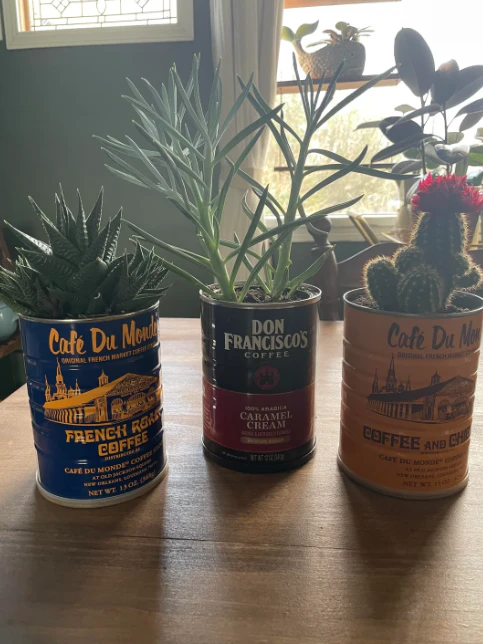 This is probably the easiest place to start. Those empty cans from soup, coffee, or canned vegetables are perfect little homes for small plants.
