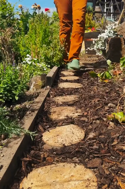 • Maria's Inspiration: This is the type of path my friend Maria used that first inspired me. Itโ€™s incredibly budget-friendly, especially if you can get free wood chips from local tree services. The main thing to remember is that organic mulch decomposes over time, so you'll need to top it up every year or two to keep it looking fresh.