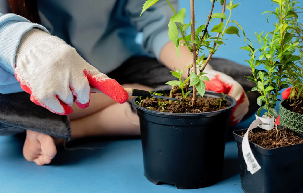 - Position and Fill: Place the plant in the pot, making sure the top of its root ball is about an inch below the rim of the container. Fill in the surrounding space with more potting mix, gently firming it down to remove air pockets.