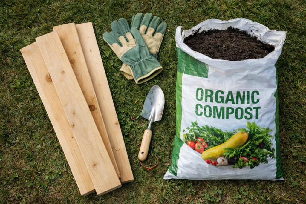- A sturdy frame: You can use untreated cedar wood, galvanized metal sheets, or even DIY repurposed bricks and stones.