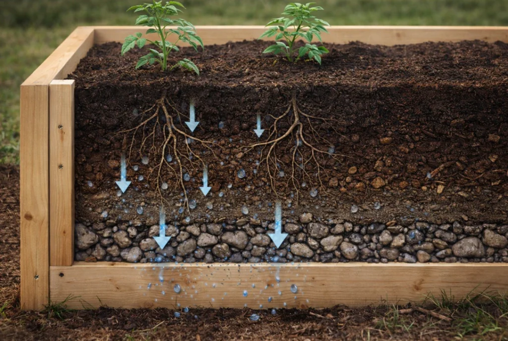 If you ever notice that the soil in your raised bed stays heavily soggy or smells sour, something is definitely wrong. It usually means you either have terrible drainage at the bottom of the box, or you are simply overwatering.